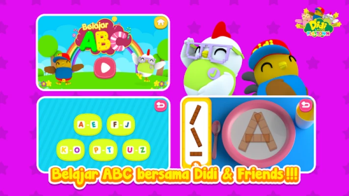 Didi & Friends Playtown menampilkan 12 permainan interaktif berasaskan lagu kanak-kanak popular Didi & Friends. Nikmati pembelajaran abjad, misi kereta, dan pengenalan objek sambil bermain dengan watak kegemaran anda. Aplikasi ini menggabungkan pendidikan dan hiburan yang sempurna untuk si kecil.