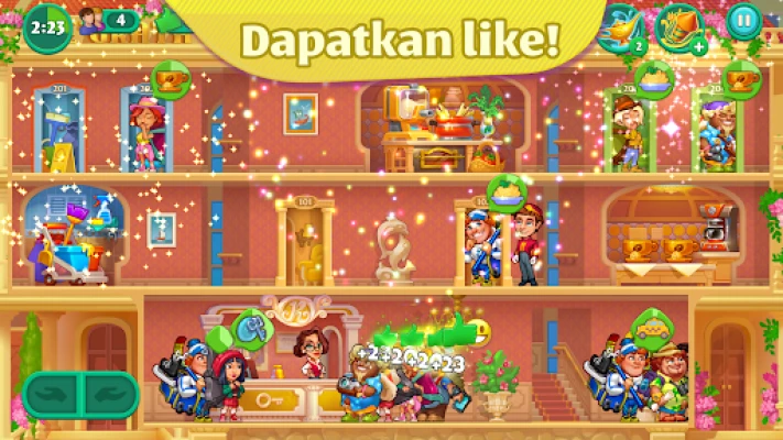 Mulakan ekspedisi anda dari sebuah hotel klasik di Amerika, kemudian kembara ke serata dunia, membuka cawangan baharu di lokasi-lokasi eksotik yang berbeza. Temui pelbagai tetamu unik dan hadapi cabaran pengurusan yang pelbagai. Kumpul koin dan permata dari setiap tahap yang berjaya untuk menaik taraf kemudahan hotel anda, menjadikannya lebih mewah dan menarik. Adakah anda menghadapi tahap yang mencabar? Manfaatkan 'pelejit' (booster) yang hebat untuk mengatasi rintangan, dan saksikan kegembiraan tetamu anda melambung tinggi dengan letupan mercun yang memukau! Buktikan bahawa anda pakar hospitaliti yang disegani di mata dunia.