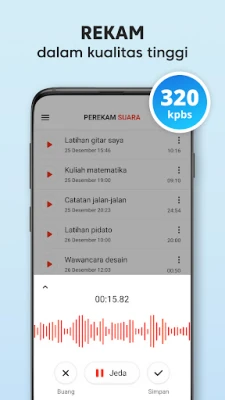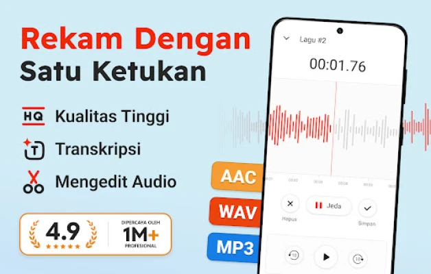 Perekam Suara Plus adalah teman digital utama anda untuk menangkap setiap nuansa audio dengan mudah dan kualiti yang unggul. Alami kebebasan merekod tanpa had masa, di mana sahaja anda berada. Sama ada anda memerlukan rakaman berdefinisi tinggi dalam format AAC atau WAV, dengan pilihan mono atau stereo yang memukau, Perekam Suara Plus menyediakannya. Nikmati ketenangan fikiran dengan ciri rakaman latar belakang, membolehkan anda terus merakam walaupun skrin peranti anda mati. Setiap sesi rakaman juga dilindungi oleh fungsi simpan automatik, memastikan tiada idea atau detik berharga yang akan hilang.