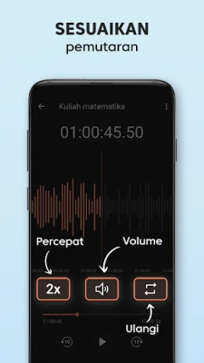 Fleksibiliti rakaman anda ditingkatkan dengan kemampuan untuk menimpa audio secara langsung. Jeda rakaman semasa, undurkan garis progres dengan mudah, dan sambung merakam dari titik yang dipilih. Apabila tiba masanya untuk mendengar semula, Perekam Suara Plus menawarkan pilihan main balik yang canggih. Gunakan pemain mini untuk capaian pantas atau selami pemain skrin penuh dengan ciri-ciri seperti pelarasan kelajuan main balik dari 0.25x hingga 2.0x. Navigasi melalui rakaman anda dengan mudah hanya dengan menyeret garis progres, dan kongsi detik istimewa, nota penting, atau bakat muzik anda dengan rakan-rakan di media sosial.