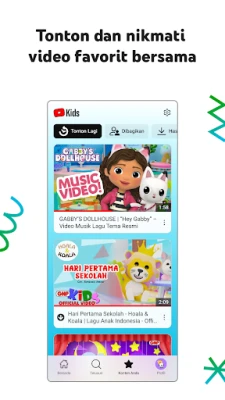 YouTube Kids memahami bahawa setiap anak berkembang mengikut rentak tersendiri. Oleh itu, pengalaman tontonan boleh disesuaikan sepenuhnya agar sejajar dengan peringkat pembangunan mereka. Untuk si kecil, mode Prasekolah menawarkan kandungan yang merangsang pembelajaran abjad dan rasa ingin tahu. Apabila mereka membesar, mode Lebih Muda memperluaskan minat mereka dengan lagu-lagu ceria, kartun mendidik, atau projek kraf DIY yang kreatif. Bagi anak-anak yang lebih besar, mode Lebih Besar memberikan kebebasan untuk menelusuri muzik popular dan video permainan kegemaran mereka. Jika anda inginkan kawalan yang lebih ketat, mode Hanya Kandungan Diluluskan membolehkan anda memilih sendiri setiap video, saluran, atau koleksi yang boleh diakses oleh anak anda.