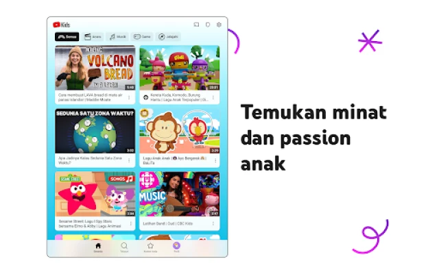 YouTube Kids mendorong anak anda meneroka minat unik mereka dengan kandungan video selamat dan dipercayai ibu bapa. Aplikasi ini direka khas untuk kanak-kanak, memupuk imaginasi, membina keyakinan, dan membantu mereka menemukan minat baru melalui navigasi mudah serta profil diperibadikan.